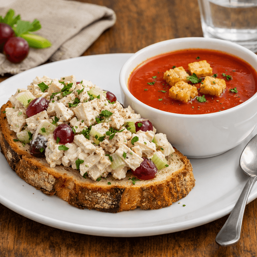 (Pictured above: chicken salad on sourdough with tomato soup.)