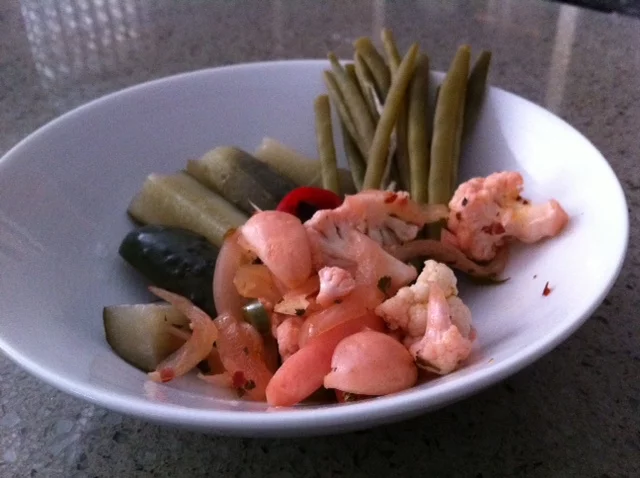 He said that Pat was almost done with our fries, and he had us take a seat in the bar to enjoy some house pickled veggies. (These were super flavorful and even the kids loved them.)