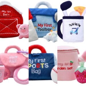 I just got these for my great niece & great nephew for their first Christmas, aren't they so cute?! Look at all the options: my first purse, my first sports bag, my first golf set, my first barn, my first garden set, & my first toolbox. Get it here.