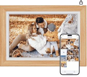 We absolutely LOVE our digital photo frame, and this version can be used with or without wifi. The size of this one is between a 5×7 & 8×10.