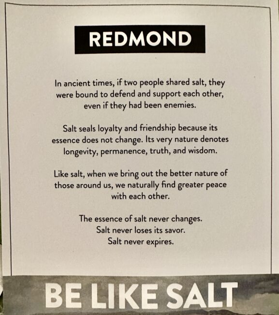 We learned so much on the Redmond sea salt tour, and it was especially interesting to hear about all the ways they go beyond the required standards for mine safety and for the purity of their sea salt.