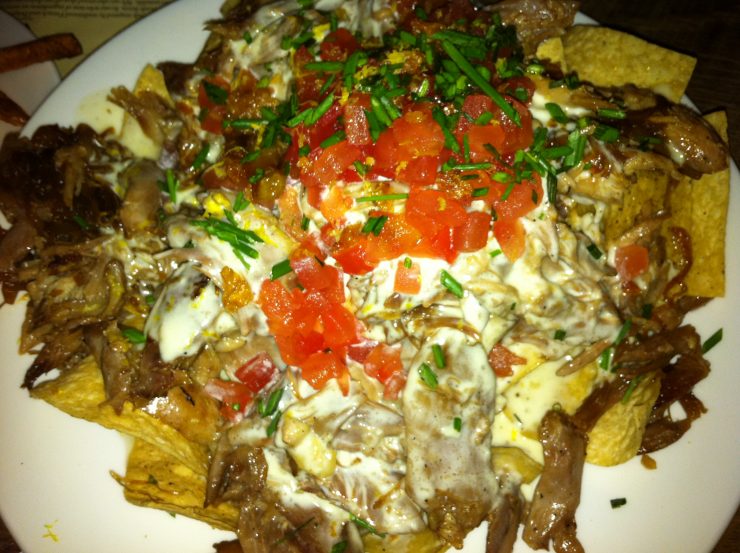 - Their duck confit is “a labor of love to get that just right“, and we enjoyed these knock-your-socks off nachos: “Pulled Duck Confit Nachos ~ brie cream, caramelized onions, white corn tortillas, tomato concassé, duck cracklin.”